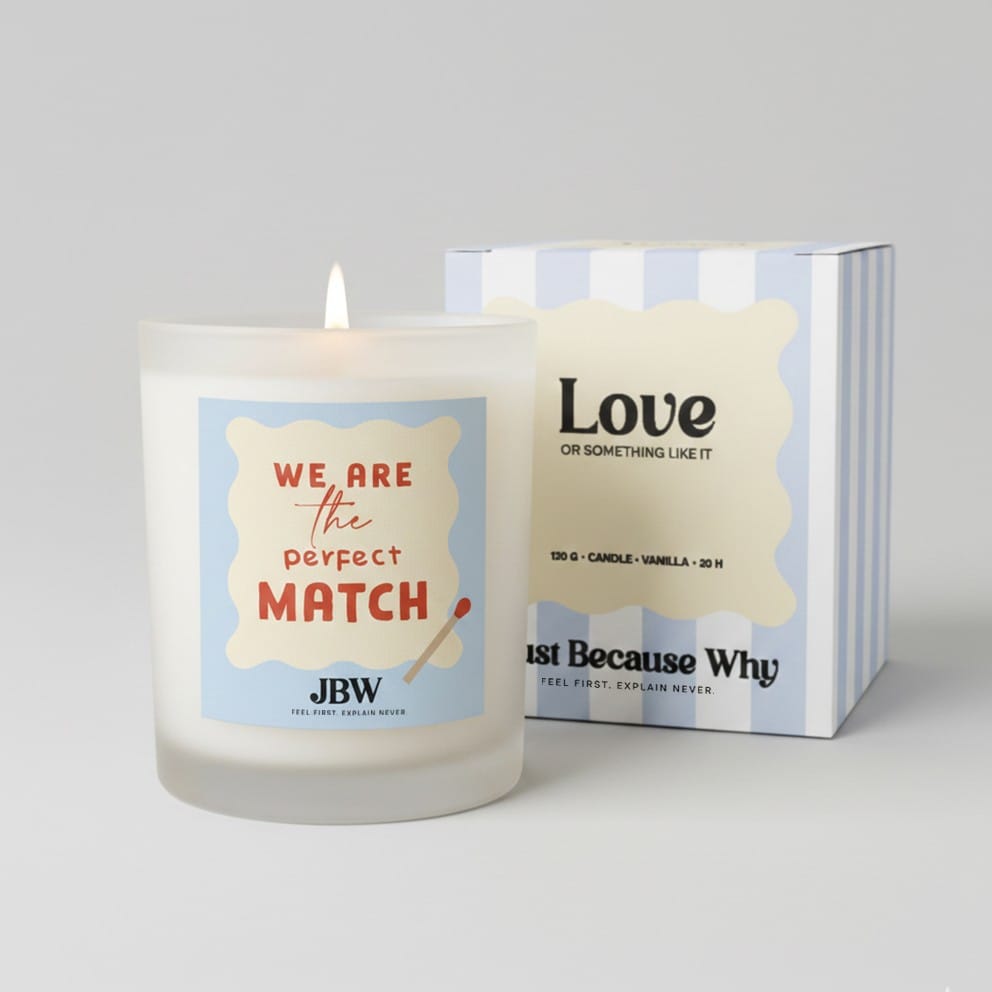 Če iščeš valentinovo darilo, ki je hkrati simpatično, lepo in uporabno, si ga pravkar našel/-la. Ta dišeča sveča je nežna, elegantna in ravno prav “hudomušna” – s sporočilom, ki pove vse: "WE ARE the perfect MATCH". Sveča je izdelana iz rastlinskega voska in vlita v minimalističen matiran steklen kozarec, ki se poda v vsak dom. Ko zagori, ustvari prijetno, sproščeno vzdušje – idealno za večere v dvoje, filmske večere ali preprosto za trenutek zase. Poseben “wow” pa doda še darilna embalaža: sveča je zapakirana v elegantno embalažo z napisom “Love or something like it.”