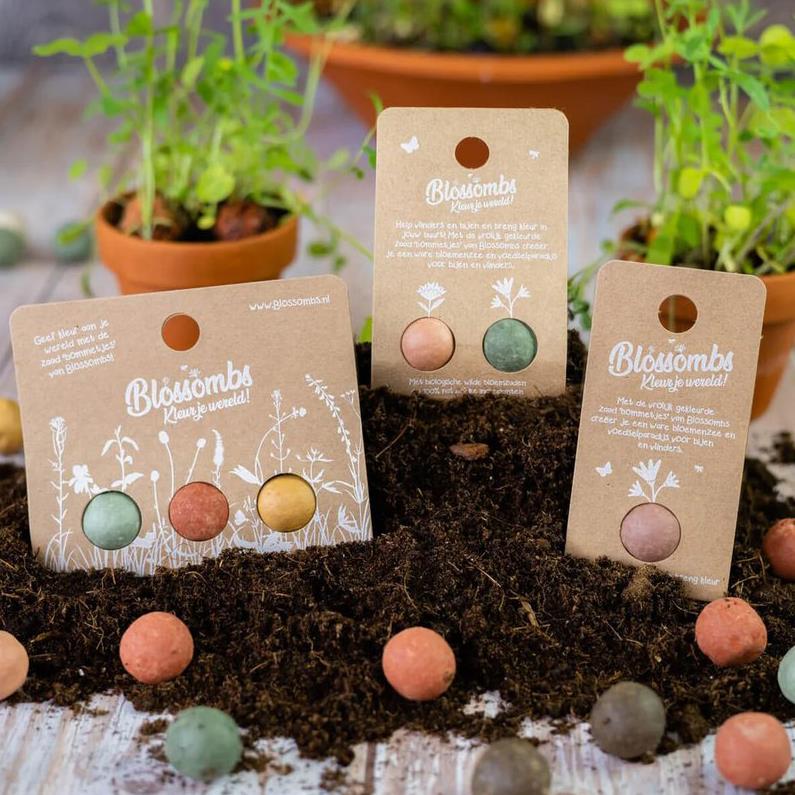 - set 4 cvetličnih bombic - The Most Colorful Time of The Year, set vključuje: 4 bombice, vsaka vsebuje mešanico okoli 13 organskih semen divjega cvetja, Blossombs, Nizozemska,