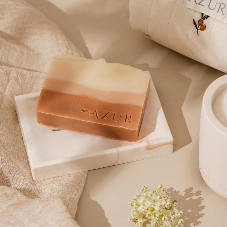 - ročno izdelano, ekološko milo Spicy Spirit, 100 g, Azur Natural Bodycare, Nizozemska,