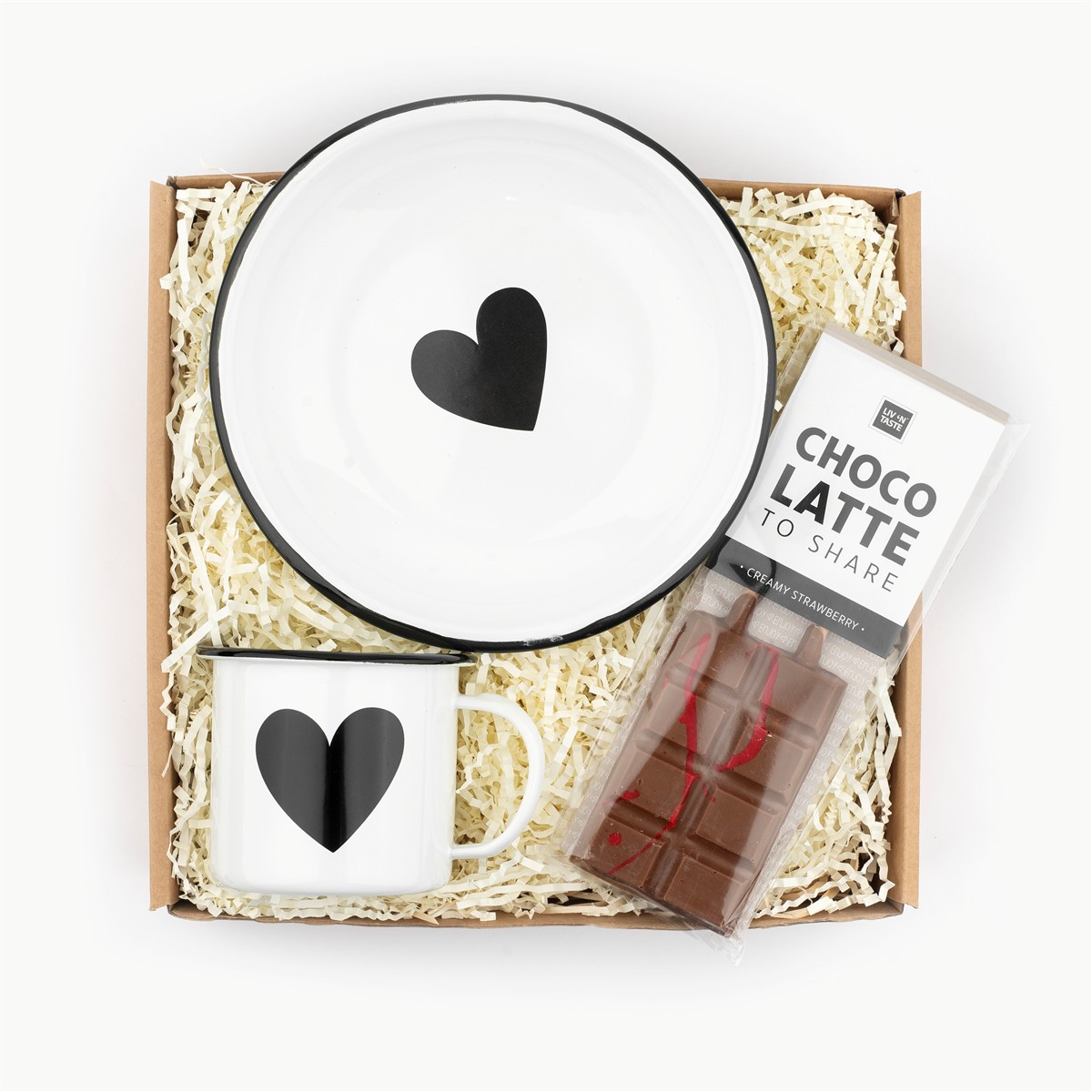 Paket Nekaj zate vsebuje emajlirano skodelico in ujemajoč krožnik s srčnim motivom ter vročo čokolado na palčki za sladke, sproščene trenutke. Prikupna mala pozornost, ki pogreje roke, razveseli srce in polepša vsak dan.