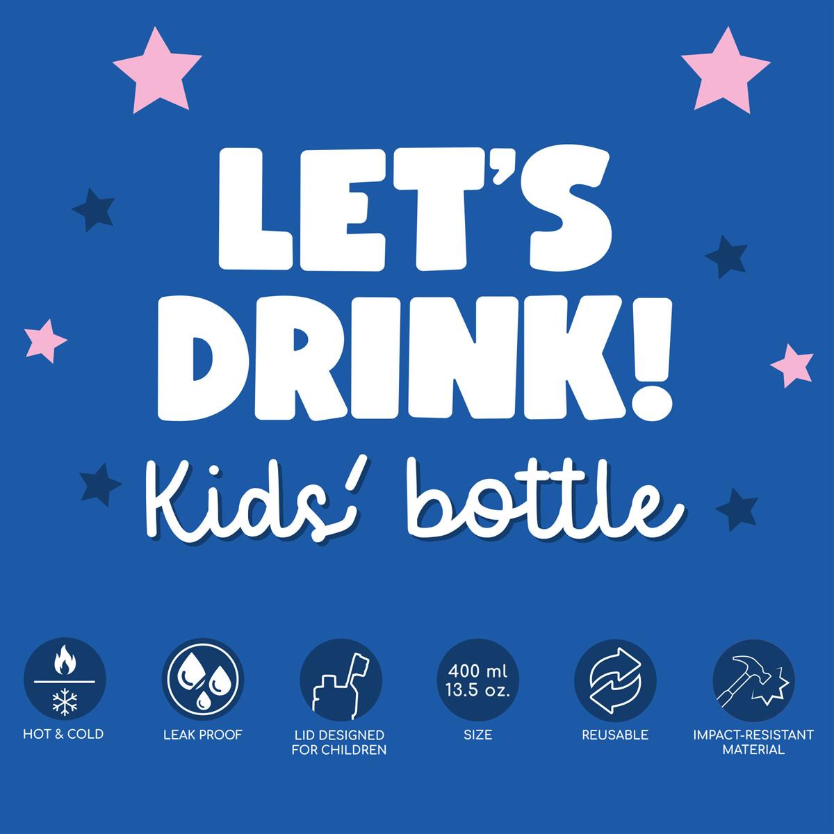 Steklenička ima priročen ročaj za nošenje, pokrovček z ustnikom, ki se enostavno odpira in zapira, ter prostornino 400 ml. Primerna je za hladne, tople (do 50 °C) in celo gazirane pijače, seveda pa je brez BPA in ftalatov ter testirana za stik z živili. Lahko se pere v pomivalnem stroju – ker vemo, da imajo starši že dovolj drugega dela.