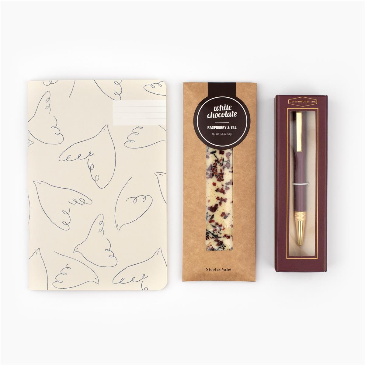 Paket Pametni pišejo je edinstven darilni paket in prava kombinacija navdiha in užitka. Vsak element je skrbno izbran, da obogati vsakdan z eleganco in sladkimi pavzami.