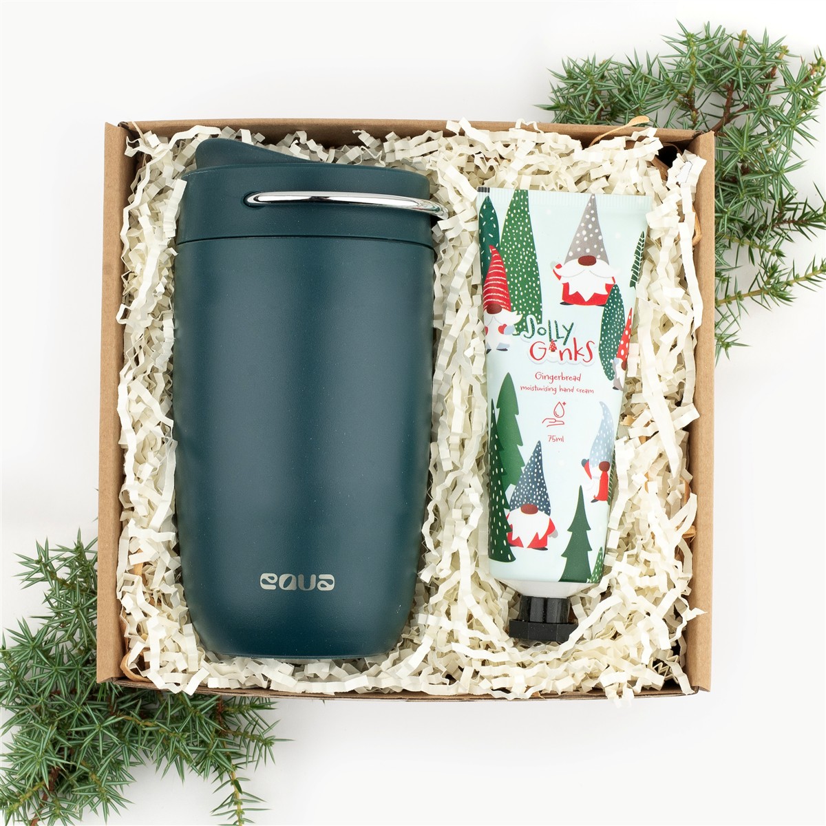Paket Praznični duo je popolno darilo za vse, ki imajo radi praktične, a elegantne pozornosti. S termo lončkom za tople napitke in praznično kremo za roke je odlična izbira za božično obdarovanje sodelavcev, prijateljev ali poslovnih partnerjev, ki cenijo udobje in prefinjen slog.