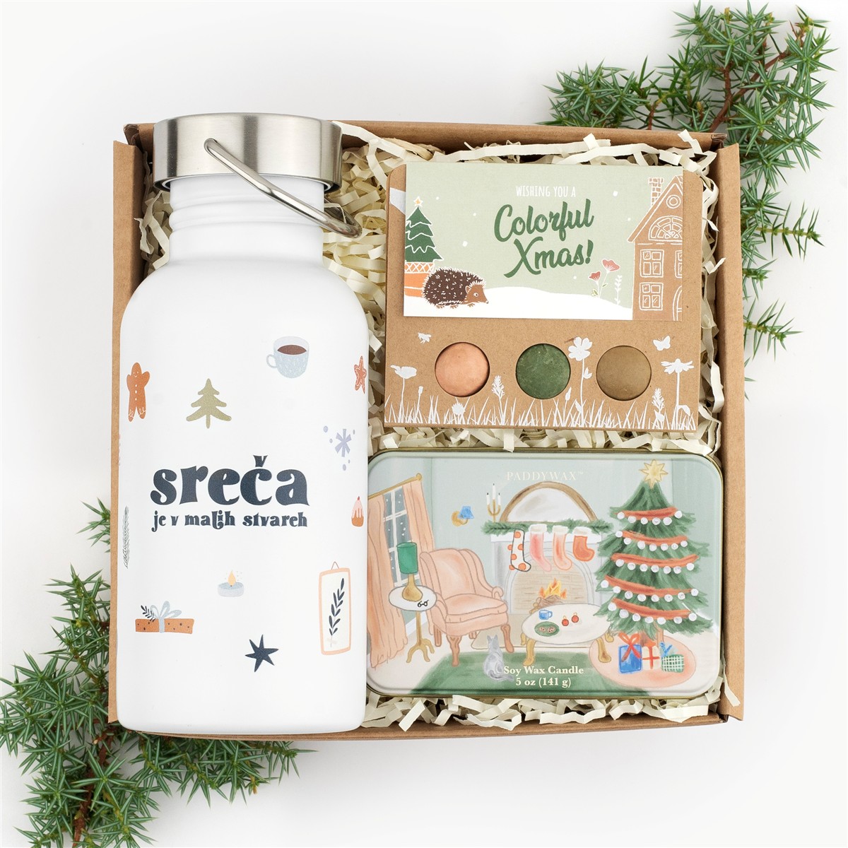 Paket Topli praznični trenutki prinaša vse, kar potrebujete za malo zimske čarobnosti – dišečo svečko, stekleničko z navdihujočim sporočilom in cvetlične bombice, ki poskrbijo za pravo praznično razpoloženje. Popolno darilo za tople nasmehe v hladnih dneh.