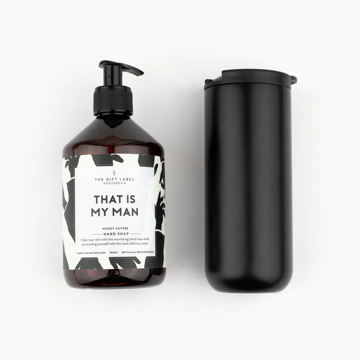 - vegansko tekoče milo za roke z napisom "That Is My Man", vonj po cedrovem lesu, 500 ml, The Gift Label,